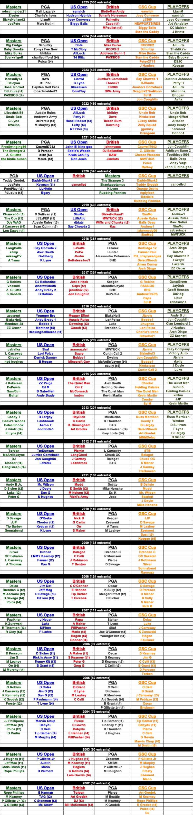 E Hannan won the 2001 Masters Pool before the advent of the GSC