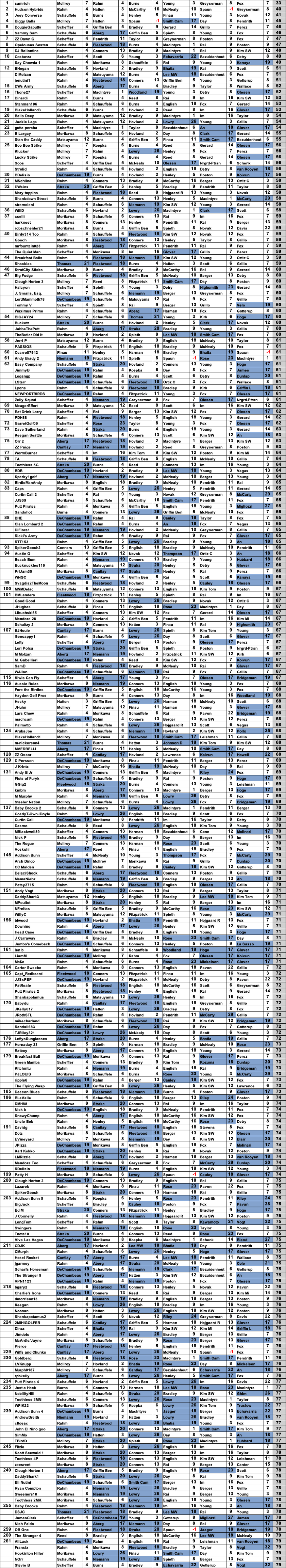 shaded golfers missed cut; ties broken when possible