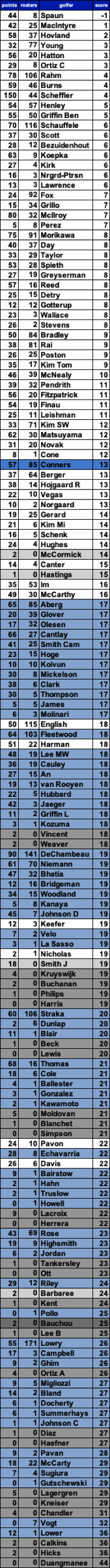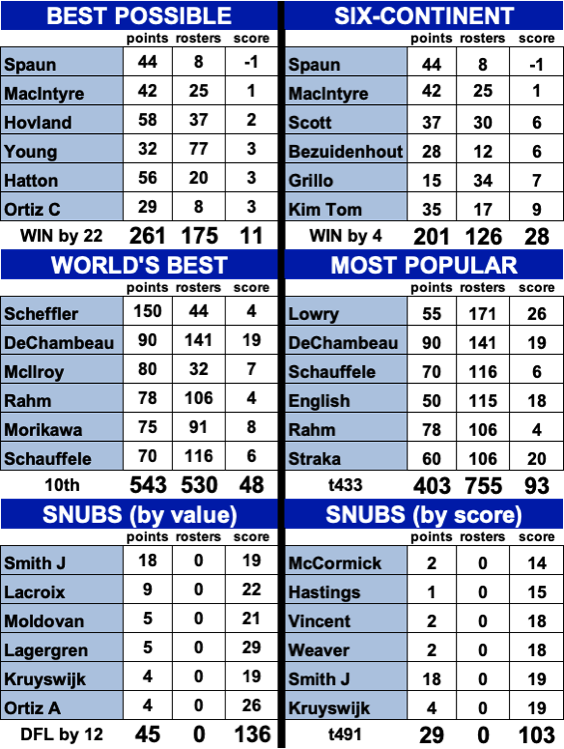 31 of 156 golfers went unpicked with Smith J the only Snub worth more than 10 points.